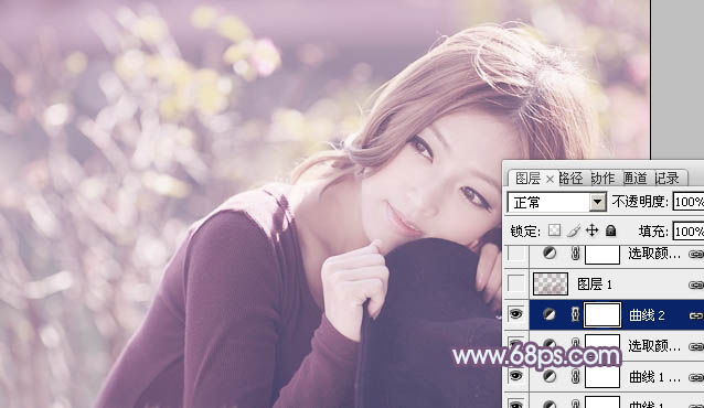 Photoshop给外景美女加上清爽的淡调紫红色(4)