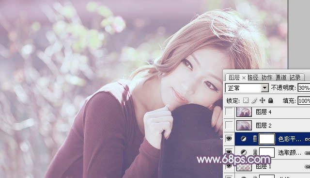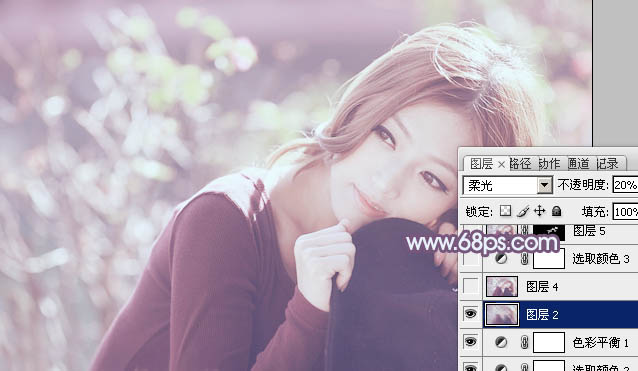 Photoshop给外景美女加上清爽的淡调紫红色(6)