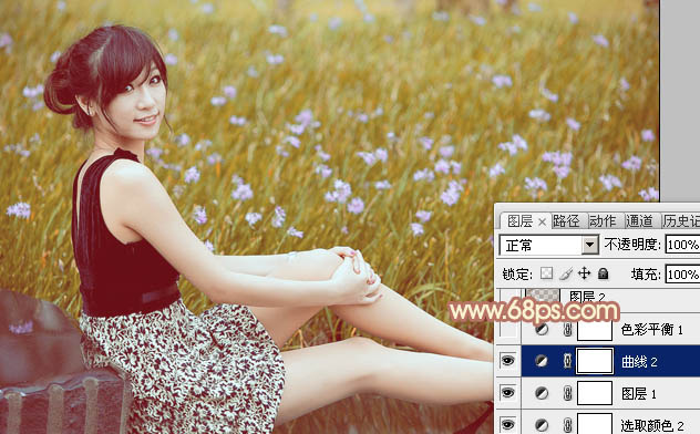 Photoshop给草地上的美女加上柔和的淡调橙褐色(4)