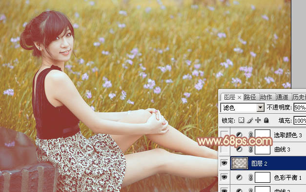 Photoshop给草地上的美女加上柔和的淡调橙褐色(5)