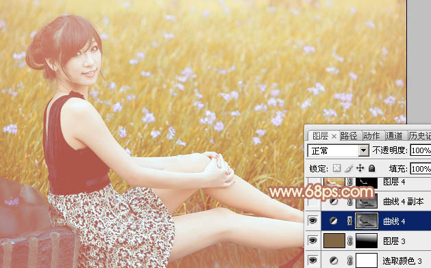 Photoshop给草地上的美女加上柔和的淡调橙褐色(7)