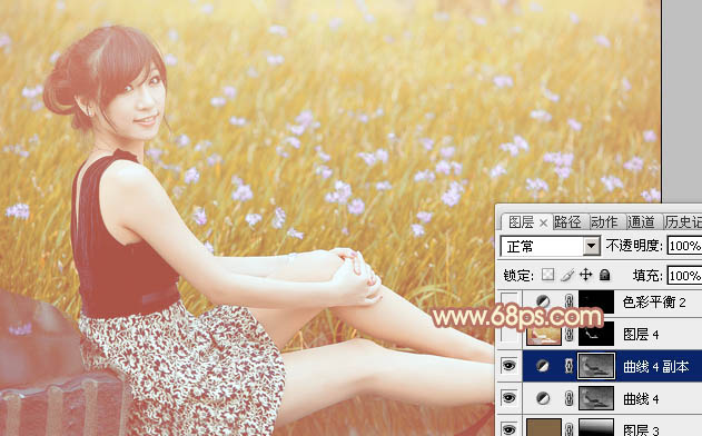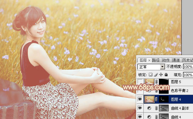 Photoshop给草地上的美女加上柔和的淡调橙褐色(8)