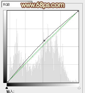7、创建曲线调整图层,对RGB,绿通道进行调整,参数设置如图18,确定后把蒙版填充黑色,用白色画笔把人物部分擦出来,效果如图19。这一步主要把人物肤色部分调亮。