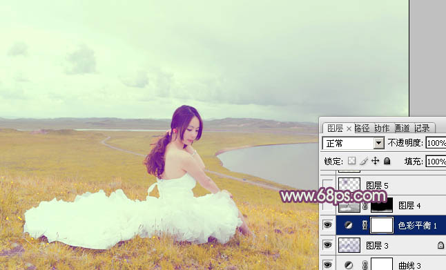 Photoshop给草原人物图片加上小清新的黄蓝色(6)