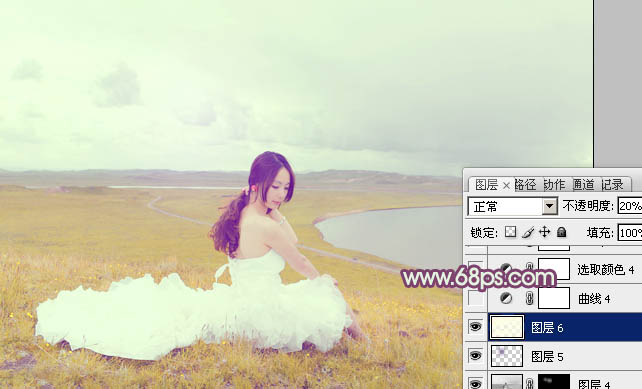 Photoshop给草原人物图片加上小清新的黄蓝色(7)