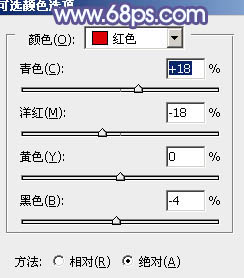 2、创建可选颜色调整图层,对红、白、黑进行调整,参数设置如图2 - 4,效果如图5。这一步主要减少图片中的红色。