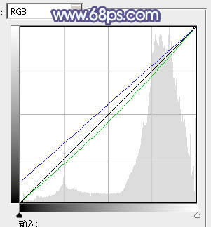 14、创建曲线调整图层,对绿,蓝通道进行调整,参数设置如图33,效果如图34。这一步给图片增加蓝色。