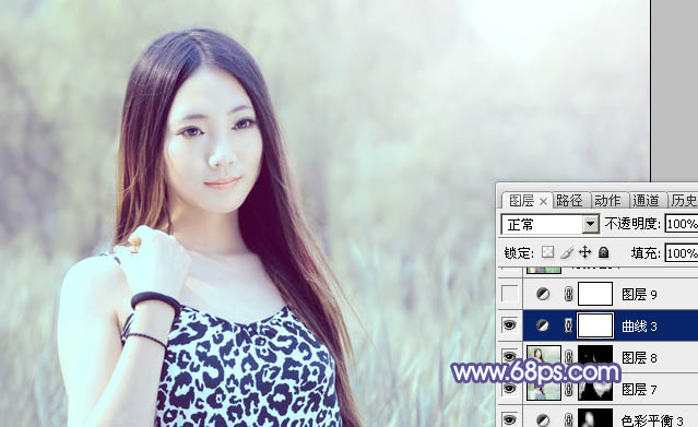 Photoshop给绿树边的美女加上淡美的蓝黄色(8)