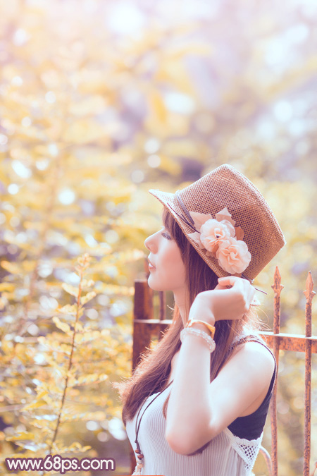 素材图片以黄绿色为主,转为秋季色比较好办。把图片中的黄色转为橙红色,绿色及暗部颜色转为紫褐色。然后增强高光颜色,并把整体调柔和即可。