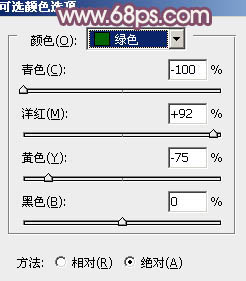2、创建可选颜色调整图层,对绿、中性、黑进行调整,参数设置如图3 - 5,效果如图6。这一步主要把绿色转为暗紫色。