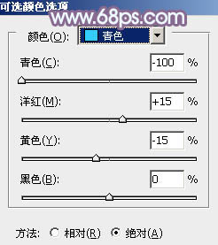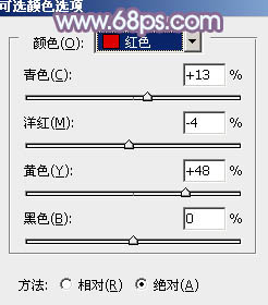 4、创建可选颜色调整图层,对红、青、白、黑进行调整,参数设置如图5 - 8,效果如图9。这一步把图片中的红色转为橙黄色,青色转为蓝色。