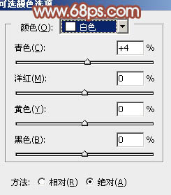 7、创建可选颜色调整图层,对红、黄、洋红、白进行调整,参数设置如图20 - 23,效果如图24。这一步微调背景颜色,并给高光部分增加淡青色。