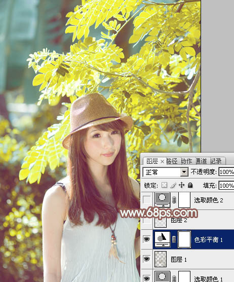 Photoshop给绿树边的美女加上甜美的小清新淡褐色(4)