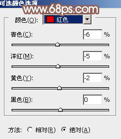 6、创建可选颜色调整图层,对红,白进行调整,参数设置如图14,15,效果如图16。这一步微调人物肤色及高光部分的颜色。