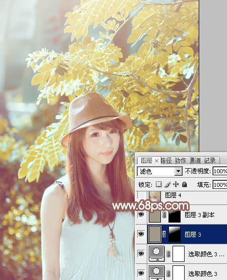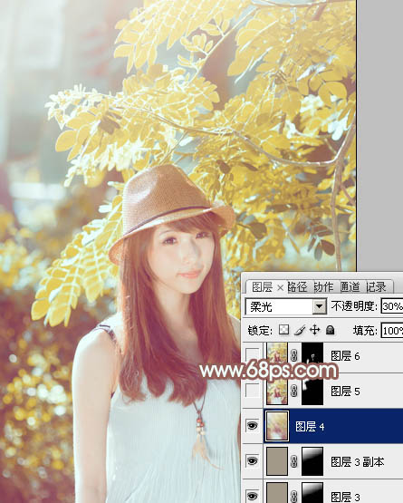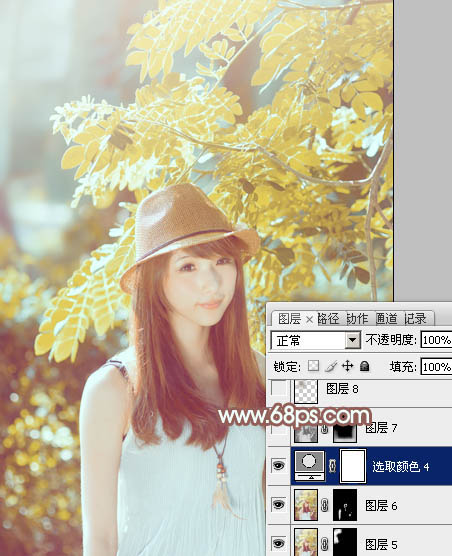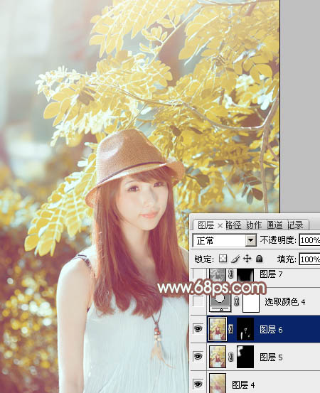 Photoshop给绿树边的美女加上甜美的小清新淡褐色(7)