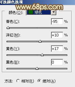 1、打开素材,创建可选颜色调整图层,对黄、绿、中性色进行调整,参数设置如图1 - 3,效果如图4。这一步给背景部分增加黄绿色。