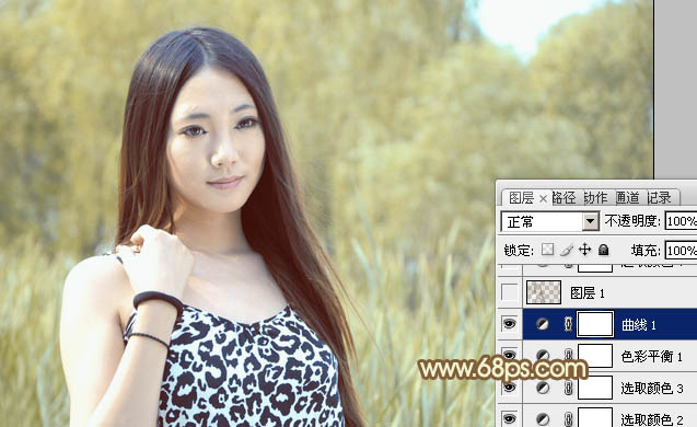 Photoshop给绿树边的美女加上韩系暖褐色(5)