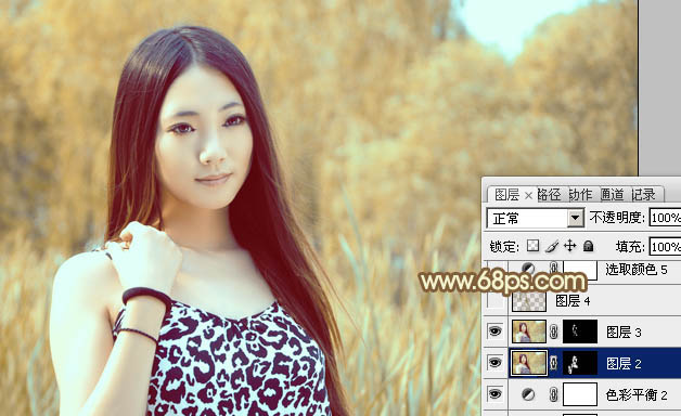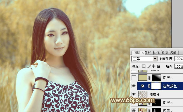 Photoshop给绿树边的美女加上韩系暖褐色(7)