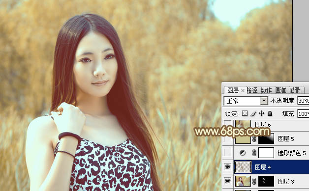 10、按Ctrl + Alt + 2 调出高光选区,按Ctrl + Shift + I 反选,新建一个图层填充黄褐色:#8A7242,不透明度改为:30%,效果如下图。这一步把整体颜色调均匀。