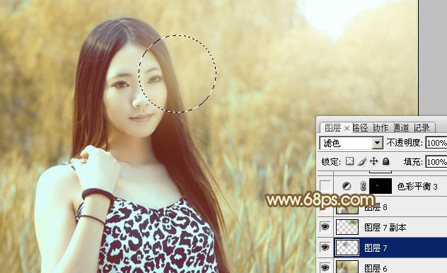 Photoshop给绿树边的美女加上韩系暖褐色(8)