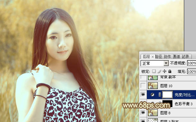 14、创建亮度/对比度调整图层,适当增加图片对比度,参数及效果如下图。