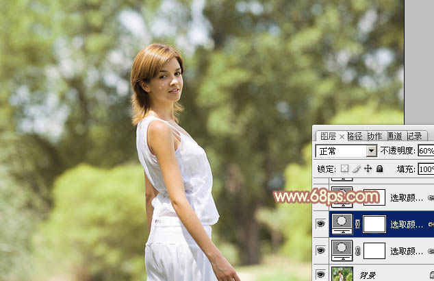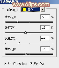 2、创建可选颜色调整图层,对黄色进行调整,参数设置如图3,确定后把图层不透明度改为:60%,效果如图4。这一步把背景部分的黄绿色调淡一点。