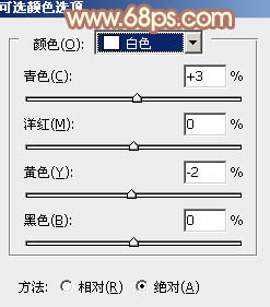 6、创建可选颜色调整图层,对红、黄、白进行调整,参数设置如图17 - 19,效果如图20。这一步主要给图片增加红色。