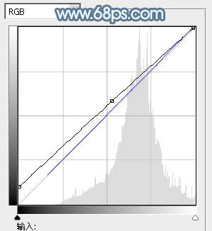5、创建曲线调整图层,对RGB进行调整,参数及效果如下图。这一步主要把图片暗部颜色调亮。