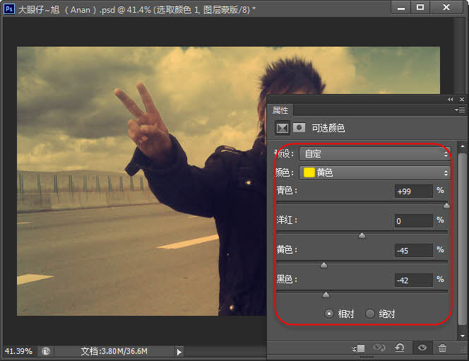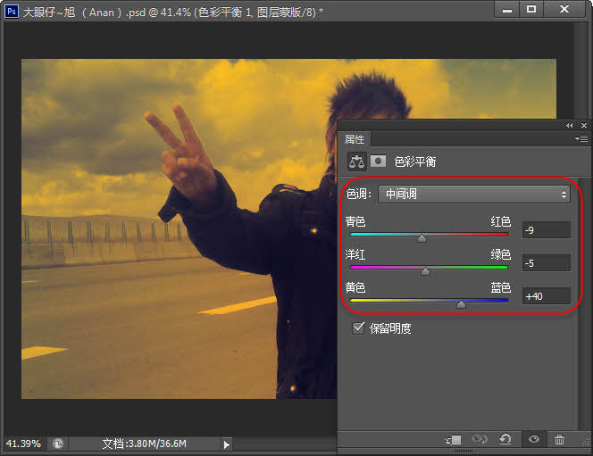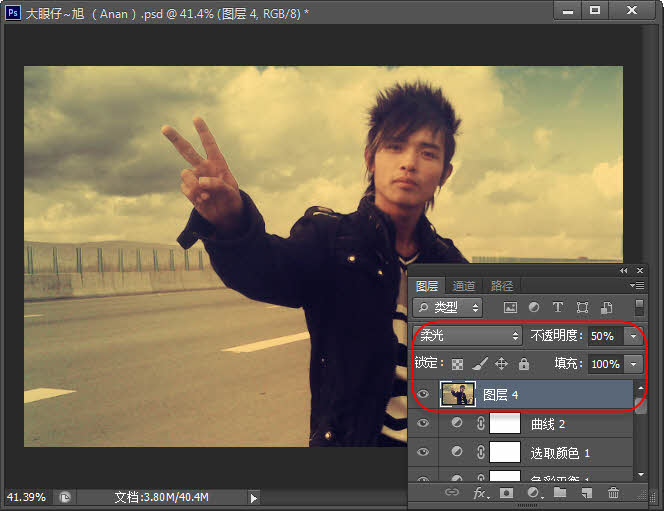 Photoshop给公路边的帅哥加上忧郁的黄褐色(5)