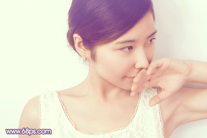 素材图片有点偏灰,不过颜色比较统一。调色的时候只需要把人物肤色转为淡黄色,背景部分的颜色转为淡青或淡黄色,暗部颜色转为暗蓝色即可。