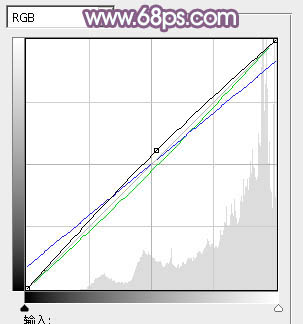 13、创建曲线调整图层对RGB、绿、蓝进行调整,参数及效果如下图。这一步主要给图片的高光及暗部增加黄色。