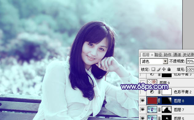 PS通道替换打造唯美的淡调青蓝色外景人物(7)