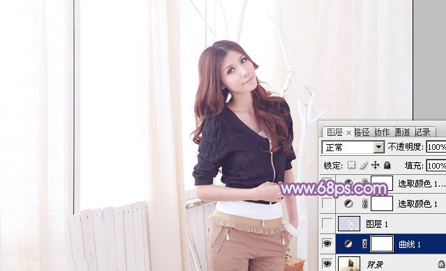 Photoshop给室内美女加上柔和的韩系淡紫色(2)