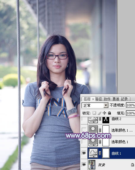 Photoshop给外景人物加上淡淡的韩系青蓝色(2)