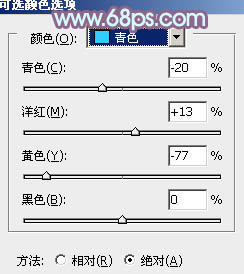 1、打开素材图片,创建可选颜色调整图层,对黄、绿、青、白、黑进行调整,参数设置如图1 - 5,效果如图6。这一步把背景颜色转为黄褐色。