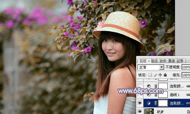 Photoshop给花边的美女加上甜美的暖紫色(2)