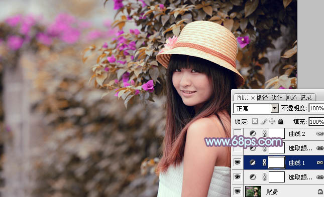 Photoshop给花边的美女加上甜美的暖紫色(3)