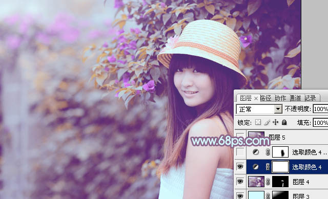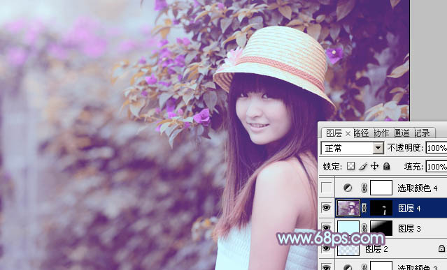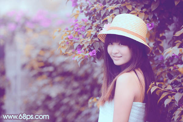 Photoshop给花边的美女加上甜美的暖紫色(7)