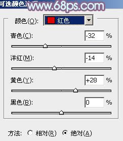 11、创建可选颜色调整图层,对红色进行调整,参数及效果如下图。这一步把红色转为橙红色。