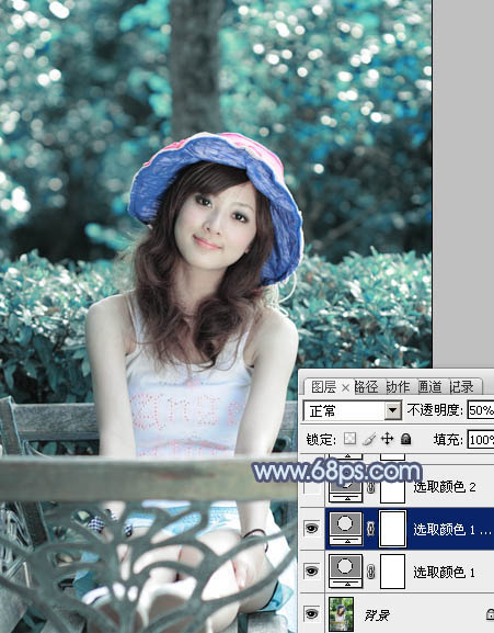 Photoshop打造甜美的青蓝色外景美女图片(2)