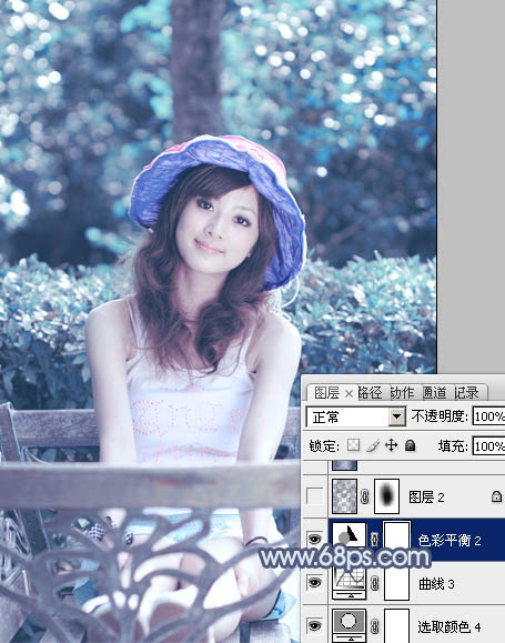 Photoshop打造甜美的青蓝色外景美女图片(5)