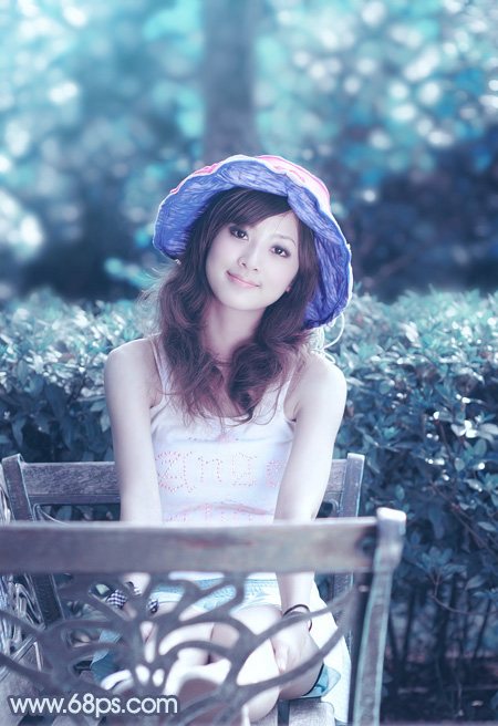 Photoshop打造甜美的青蓝色外景美女图片(8)