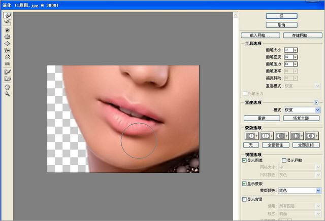9、执行液化功能对嘴唇进行标准嘴型的校正。