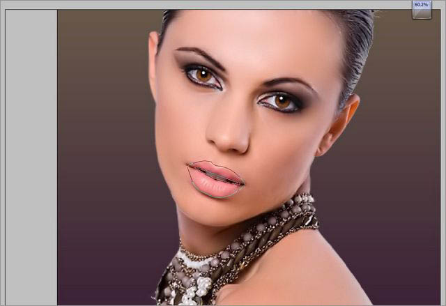 10、用钢笔工具把人物对嘴唇复制出来,记得不要忘记执行羽化哦,执行0.7个就够了。