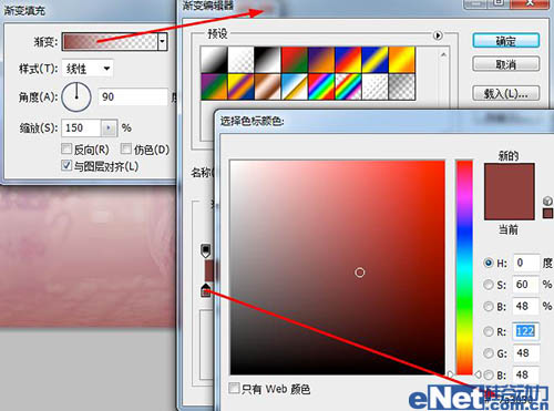 11、点击“创建新的填充或调整图层”按钮,在弹出的菜单中选择“渐变”,并设置。