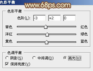 4、创建色彩平衡调整图层,对阴影、中间调、高光进行调整,参数设置如图14 - 16,效果如图17。这一步给图片增加褐色。