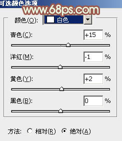 3、创建可选颜色调整图层,对红、黄、白进行调整,参数设置如图9 - 11,效果如图12。这一步把图片中的暖色调淡,并给高光部分增加一些淡青色。