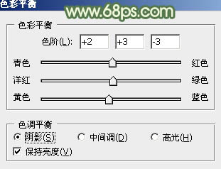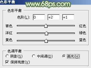 5、创建色彩平衡调整图层,对阴影,高光进行调整,参数设置如图12,13,效果如图14。这一步把图片颜色调柔和。