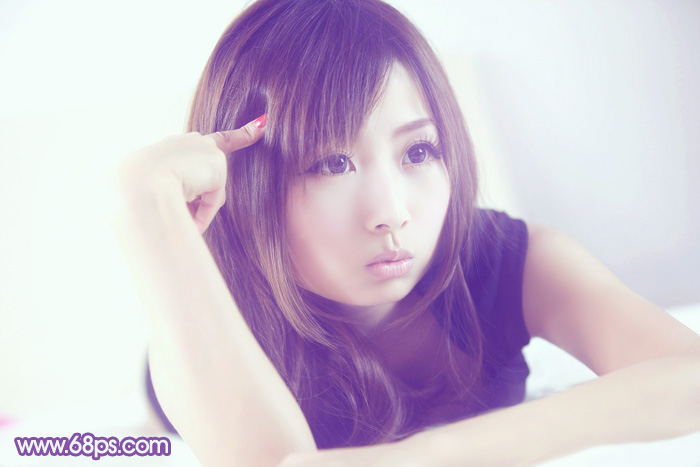 素材图片有点偏暗,同时人物肤色有点偏色。处理的时候可以适当增加图片的亮度,给高光部分增加一些淡色,这样可以快速把图片调亮,后期再简单润色即可。