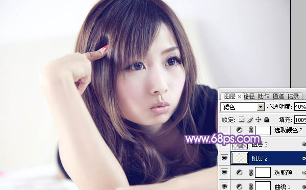 5、按Ctrl + Alt + 2 调出高光选区,新建一个图层填充淡黄色:#F2F3E5,混合模式改为“滤色”,不透明度改为:40%,效果如下图。这一步增加图片亮度。